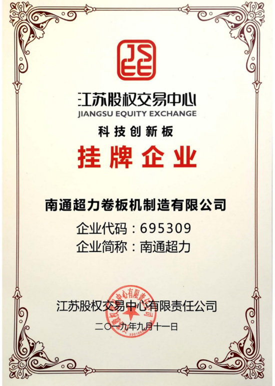 公司致力于卷板機(jī)技術(shù)創(chuàng)新與研發(fā)。擁有江蘇省(南通超力)數(shù)控卷板機(jī)工程技術(shù)研究中心,江蘇省企業(yè)研究生工作站,公司與南京航空航天大學(xué)、燕山大學(xué)、黎明化工研究院等高校和科研機(jī)構(gòu)建立了產(chǎn)學(xué)研合作關(guān)系,南京航空航天大學(xué)產(chǎn)學(xué)研基地,江蘇省鍛壓機(jī)械產(chǎn)品質(zhì)量監(jiān)督檢驗(yàn)中心合作單位。中國(guó)質(zhì)量認(rèn)證中心(CQC)ISO9001質(zhì)量管理體系認(rèn)證企業(yè),卷板機(jī)產(chǎn)品獲CE認(rèn)證。