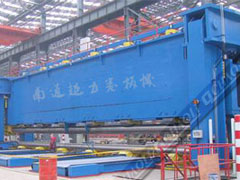 船用三輥對稱式卷板機(jī)結(jié)構(gòu)型式為三輥對稱式,上輥在兩下輥中央對稱位置作垂直升降運(yùn)動,通過液壓缸內(nèi)的液壓油作用于活塞桿而獲得,為液壓傳動;通過特殊設(shè)計(jì)減速機(jī)分別帶動全滾動軸承的兩下輥?zhàn)餍D(zhuǎn)運(yùn)動,為卷制板材提供扭矩;在下輥下部設(shè)有多組托輥,以提高下輥的剛度,并可進(jìn)行垂直調(diào)節(jié);在上輥的上部設(shè)有剛性大梁,在大梁與上輥之間設(shè)有多組托輥,以提高上輥的剛度;適用于超寬圓弧形零件的卷制??删戆搴?mm-50mm,板寬21000mm的板料。
